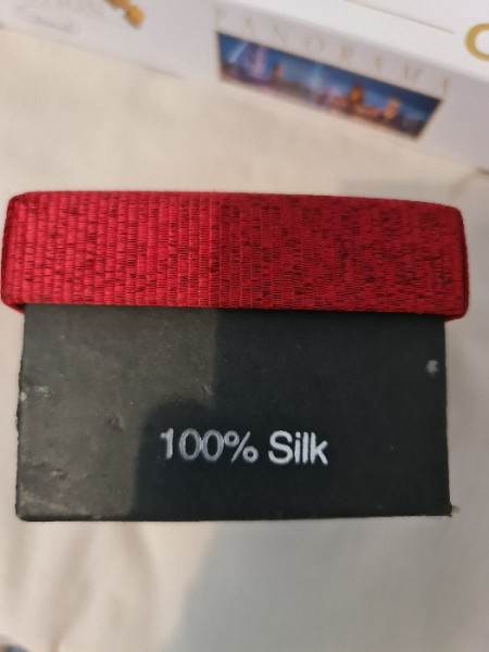 100% silk red tie and cufflinks, never worn or put the box.