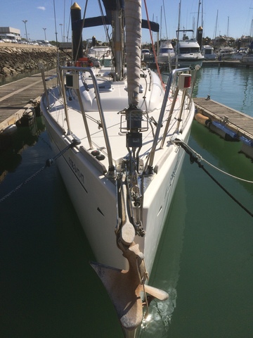 Magnífico crucero-regata en perfecto estado, equipado con dos juegos de velas de transporte (Génova y mayor) tres Génovas de pentex, 2spinaker(ligero y medio) tangon de carbono y genaker con calcetín de 2016 , 6 winches Harken, molinete de ancla, GPS plotter, piloto automático raymarine, tres pantallas a pie mástil NKE con control remoto, es la versión tres cabinas un baño y motor volo de 20hp IVA incluido. Color Blanco