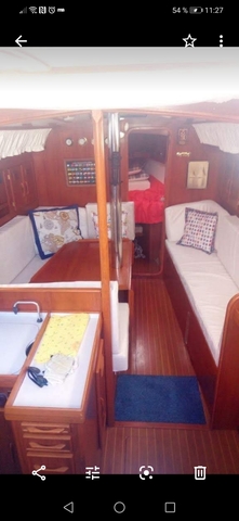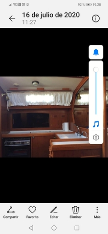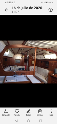 Tres baterias nuevas, dos radios homologadas, Cañeros a popa, amplia jupet para baño y pesca, jarcia revisada hace dos años, hélice plegable, bandera española lista 7. Patente, cambios de aceites y filtros julio de este año.