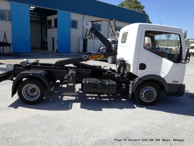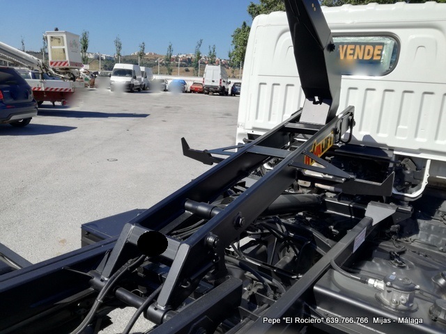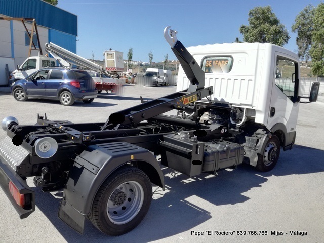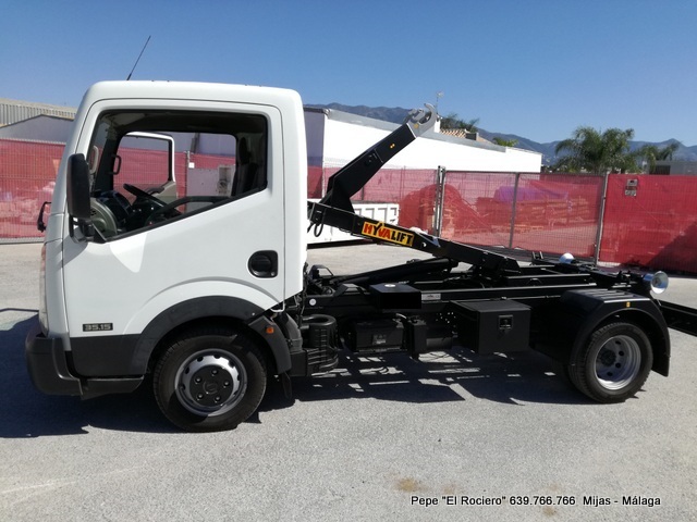 se vende camión nissan cabstar 3515 pma 3. 500 kg. 150 caballos. 3 plazas. aire acondicionado, cierre centralizado y elevalunas eléctrico. frenos abs. . sistema de gancho multi line. para más info llama al 639. 766. 766 pepe. no correos ni whatsapp. . color blanco. cubas contenedores para broza de jardineria. transporte de agua para riego o sus animales. Color blanco