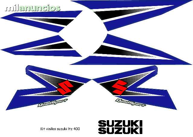 Pegatinas para SUZUKI - LTZ 400 Kit completo de vinilos adhesivos para Suzuki ltz 400, similares a las originales, pegatinas de alta calidad. 8 piezas. 2 delanteras, 2 traseras, 2 del deposito de gasolina y 2 con las letras de suzuki. Disponible en varios colores y modelos. Atiendo tambien whatsapp