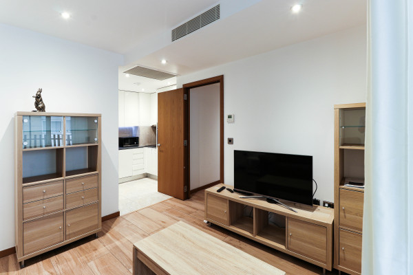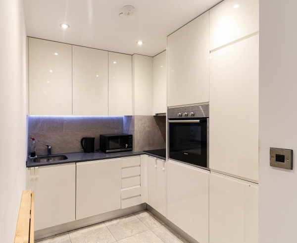The flat comes with a basic inventory of items and white goods (fridge, freezer, dish washer, washing machine, hob, oven, microwave, kettle, toaster, iron).