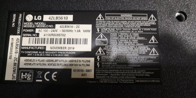 Desmontada de tv lg 42lb5610 por rotura de pantalla, totalmente funcional.